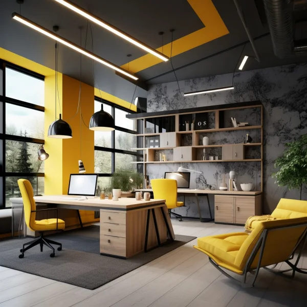 ترکیب رنگ زرد و طوسی یکی از ترکیب رنگ های مدرن و محبوب برای فضای کار به شمار می آید. این پالت رنگی را می توانید به شیوه های خلاقانه و مختلف برای اتاق کار و مطالعه به کار ببرید. این ترکیب رنگ به افزایش بهره وری، خلاقیت و تمرکز شما در این فضا کمک می کند. علاوه بر این می توانید برای دکوراسیون محیط های اداری، اتاق جلسات، کسب و کارهای خلاقانه و هنری هم از این پالت رنگی استفاده کنید.